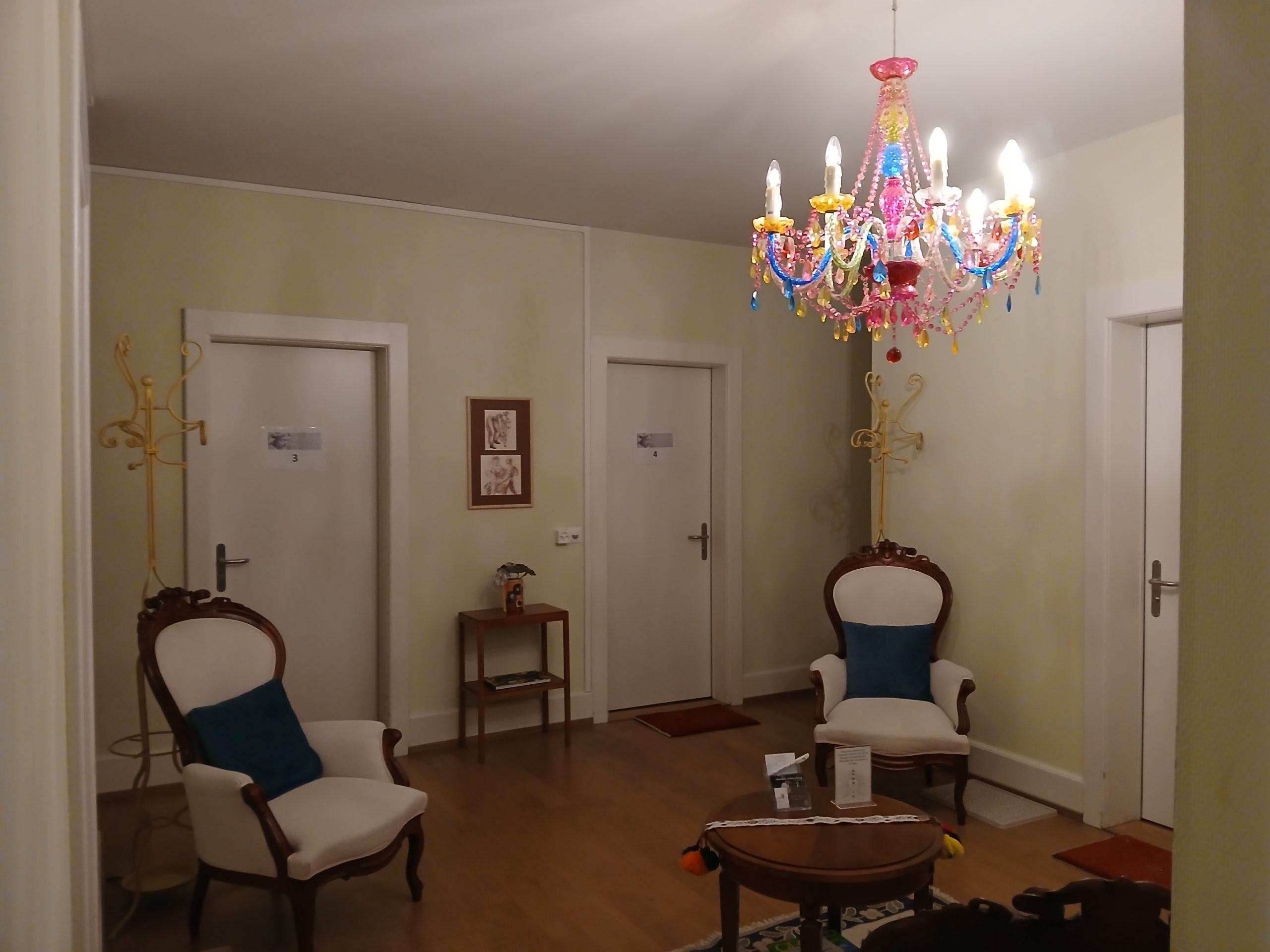 Das ist doch ein ganz anderes Ambiente als in Sankt Antoni, auch wenn der Leuchter ein bisschen kitschig ist. 🙂