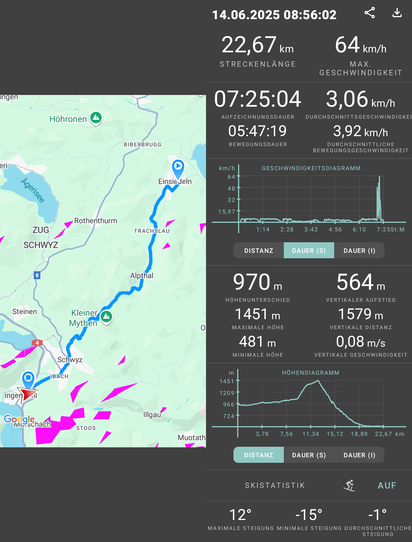 Den letzten Satz kann ich vorbehaltlos unterstreichen, die erste Aussage nicht ganz so. Ich möchte behaupten, wir hatten auf unserem Weg durch die Schweiz weitaus schönere Abschnitte. Aber natürlich sieht das jeder mit anderen Augen. Vielleicht liegt es aber auch an den Umständen, unter denen wir die 400 Höhenmeter auf einer Strecke von circa 3km bewältigt haben.