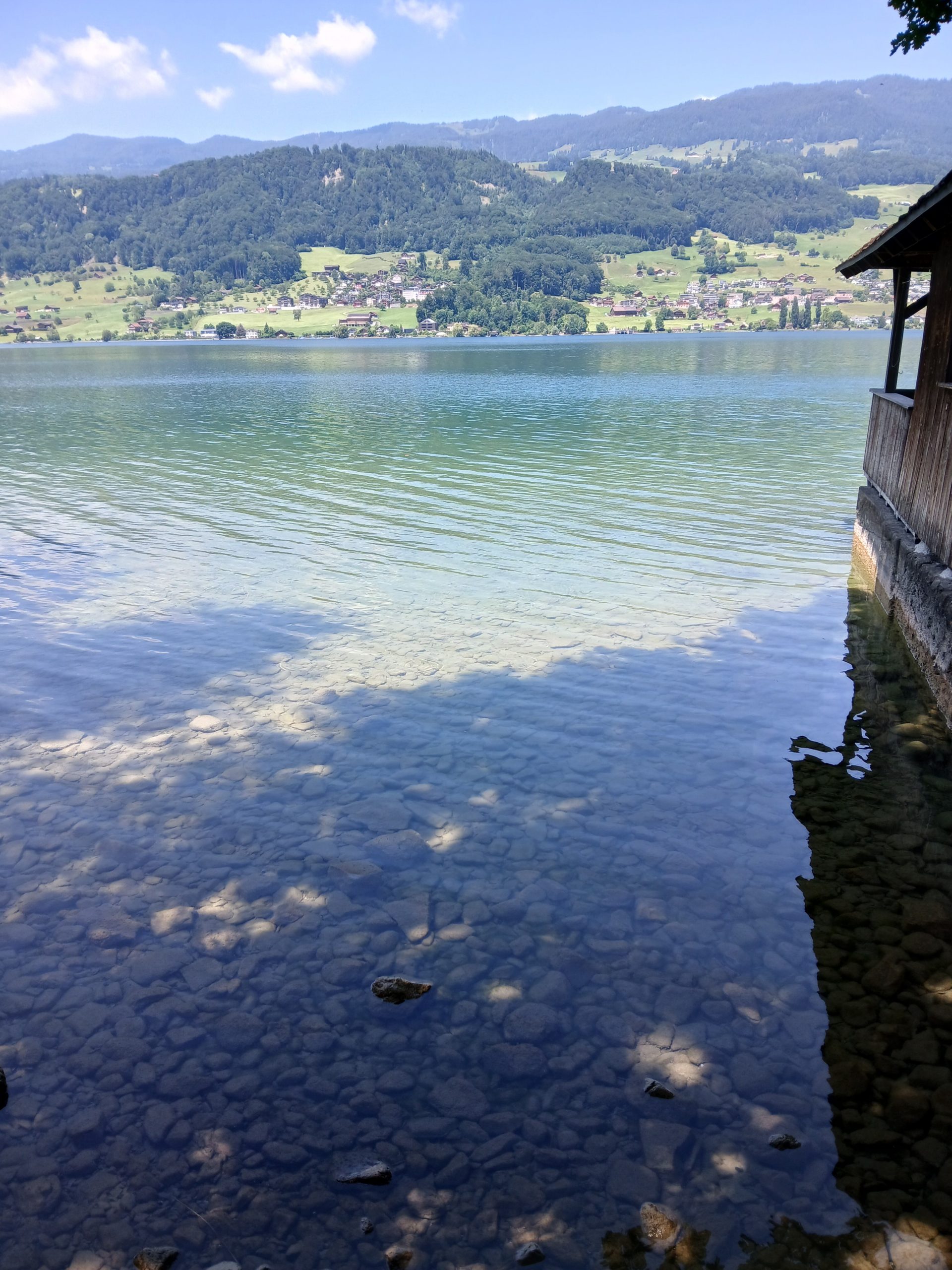 Jetzt sitzen wir hier, auf der Terrasse unserer Unterkunft und genießen den Blick in die Landschaft. Nur wenige Meter von uns entfernt schimmert der See in einem intensiven Grün. Nach Auskunft unserer Gastgeber liegt das am Einfall des Sonnenlichts und die Farbe ändert sich bei einem anderen Winkel meist in ein Azurblau.
