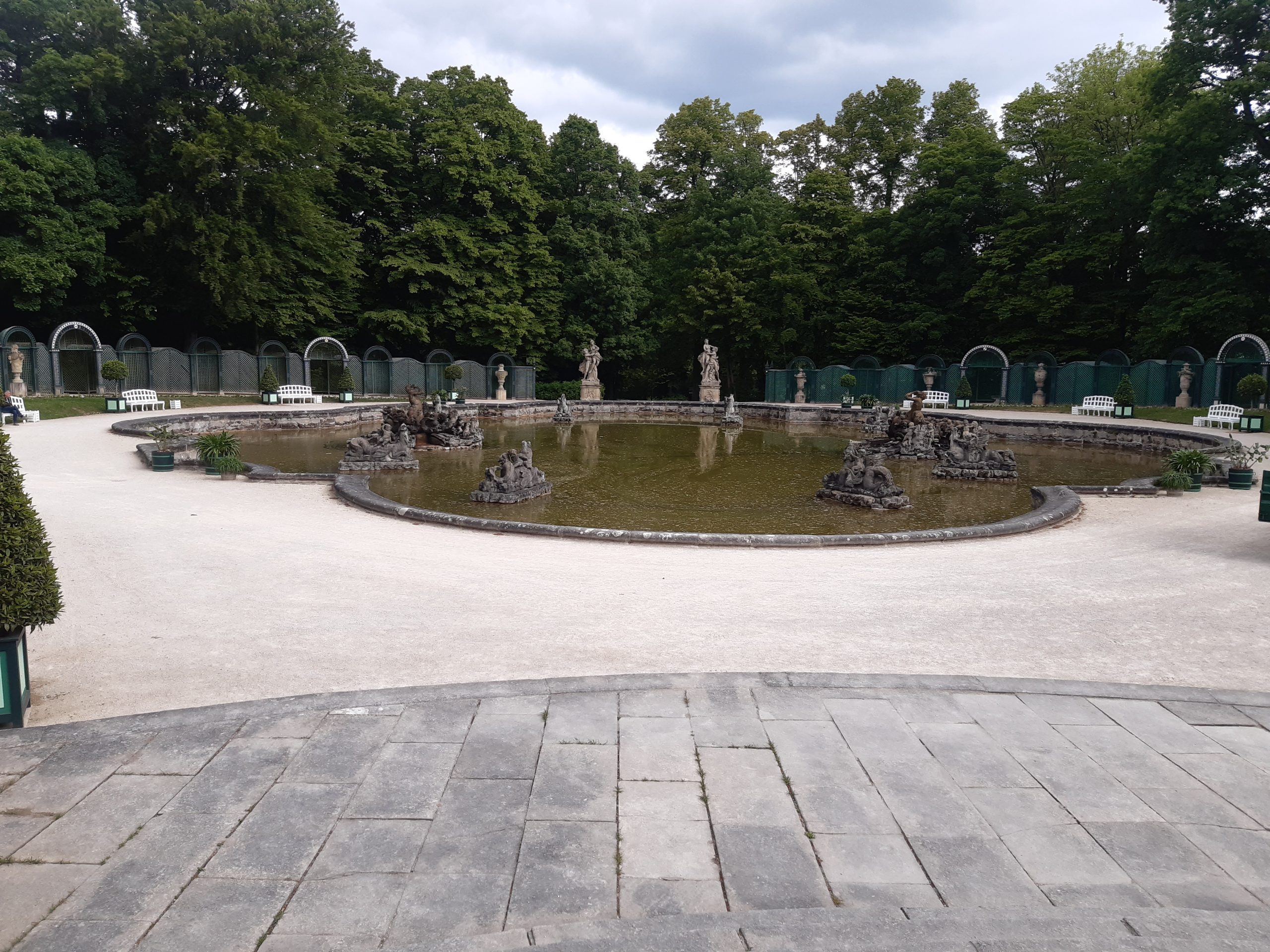 Dass wir uns deshalb verlaufen, steht nicht zu befürchten, denn es geht immer geradeaus, bis wir wieder auf den ausgeschilderten Weg kommen. Dann finden wir uns in der Eremitage wieder. Ein wunderschönes Gelände am Rande von Bayreuth, an das ich mich aber gar nicht erinnern kann. Entweder wurde der Wegverlauf geändert, oder ich bin 2017 irgendwie daran vorbeigelaufen.